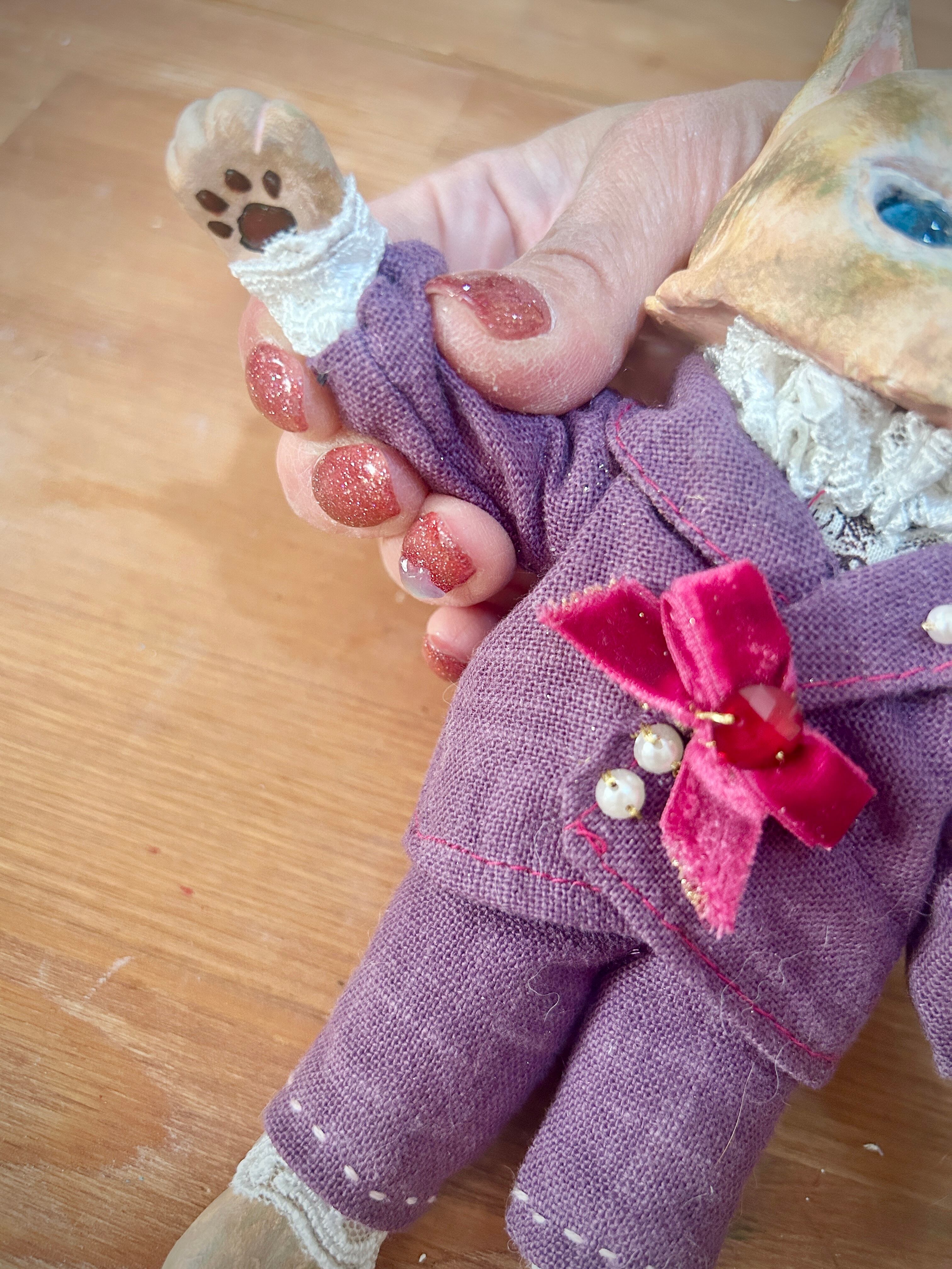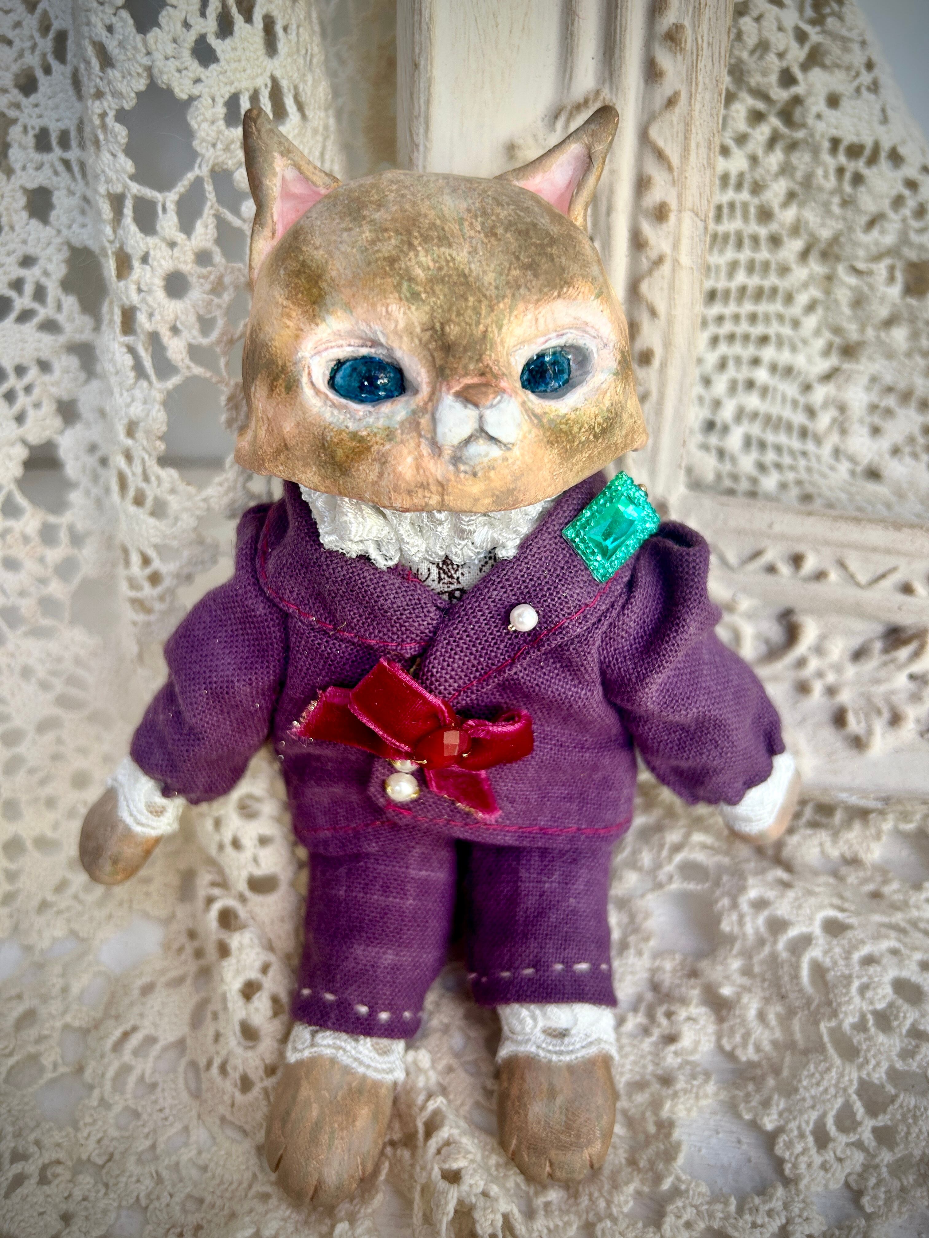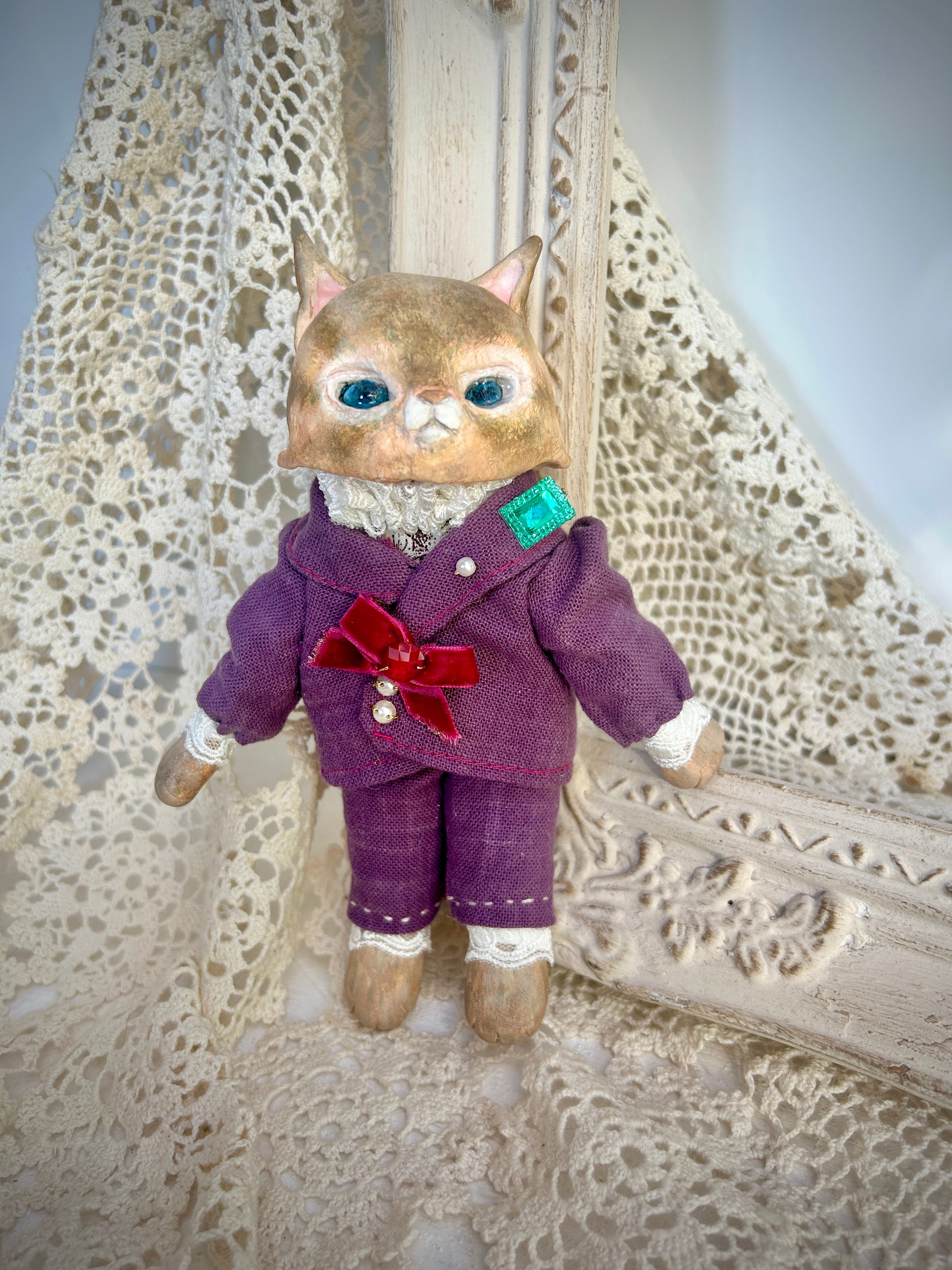 Cat in Purple 紫のネコ- Antique style doll