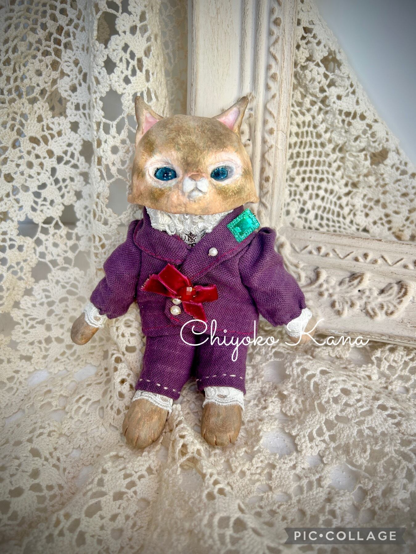 おしゃれをした猫ドールです。
