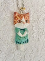 青いワンピのねこ ペンダント