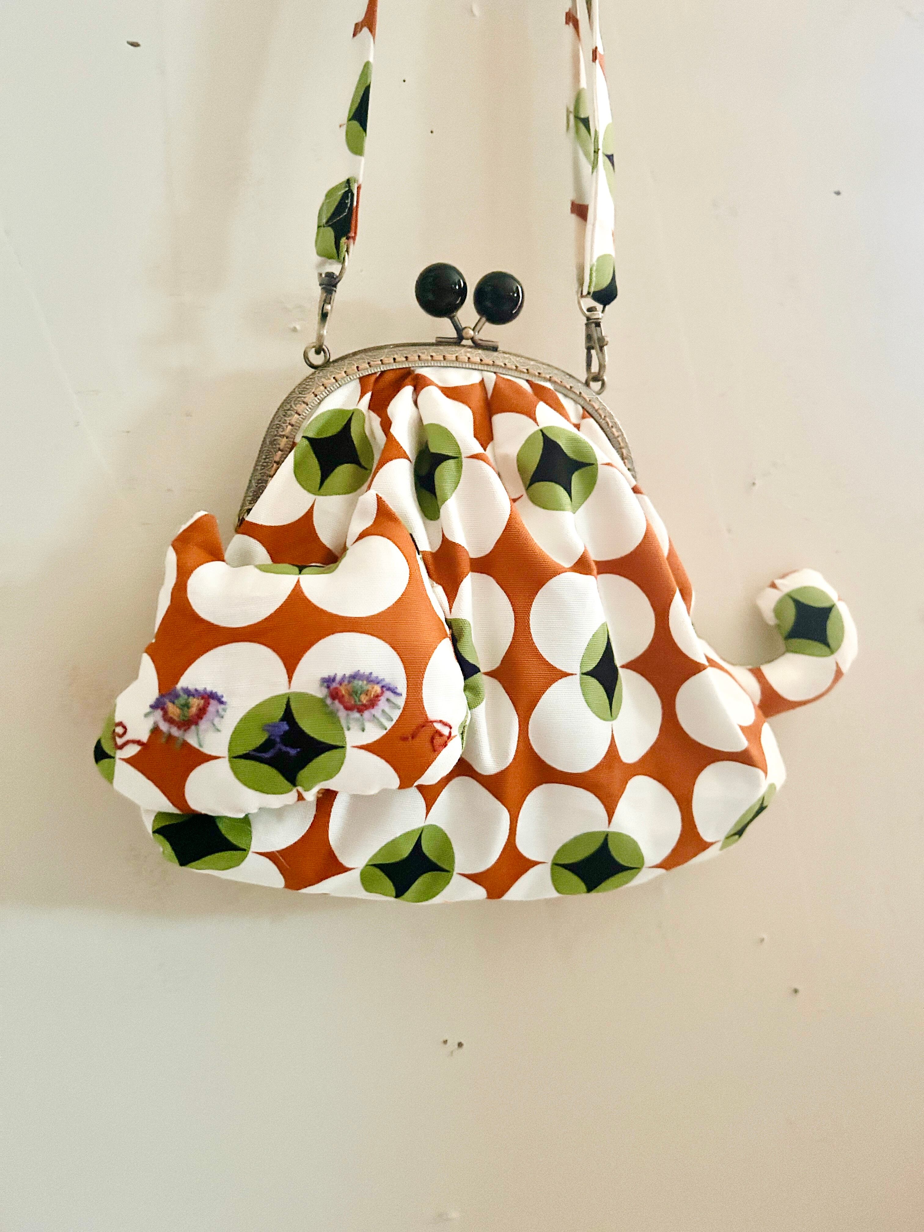 ストラップは斜めがけの共布ショルダー紐。