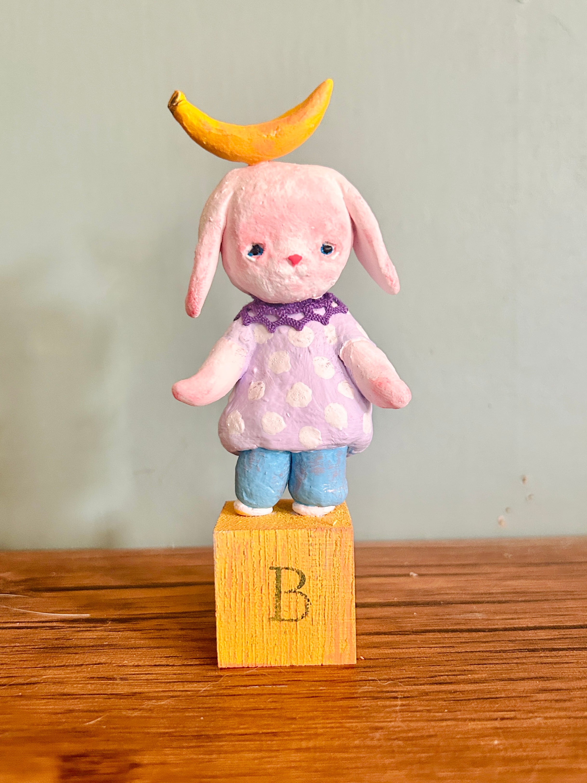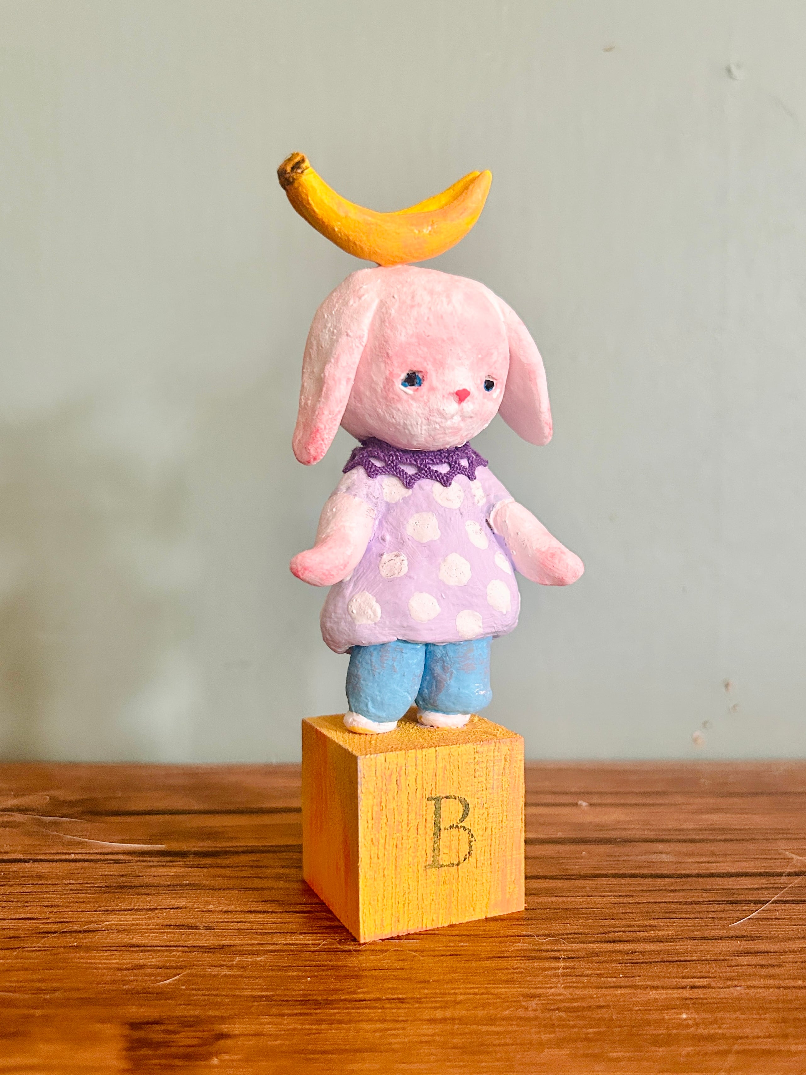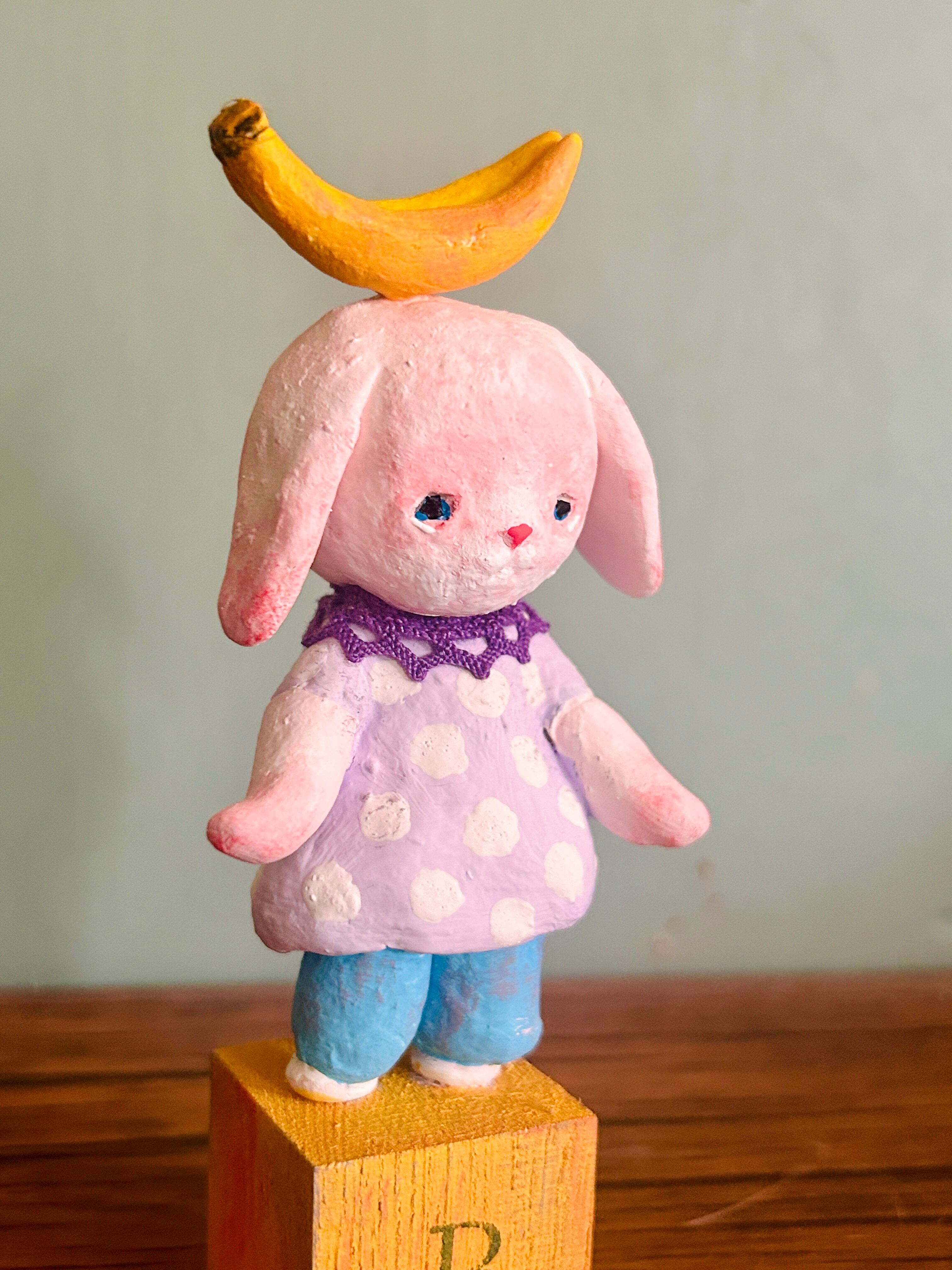 バナナを乗せたうさぎです。