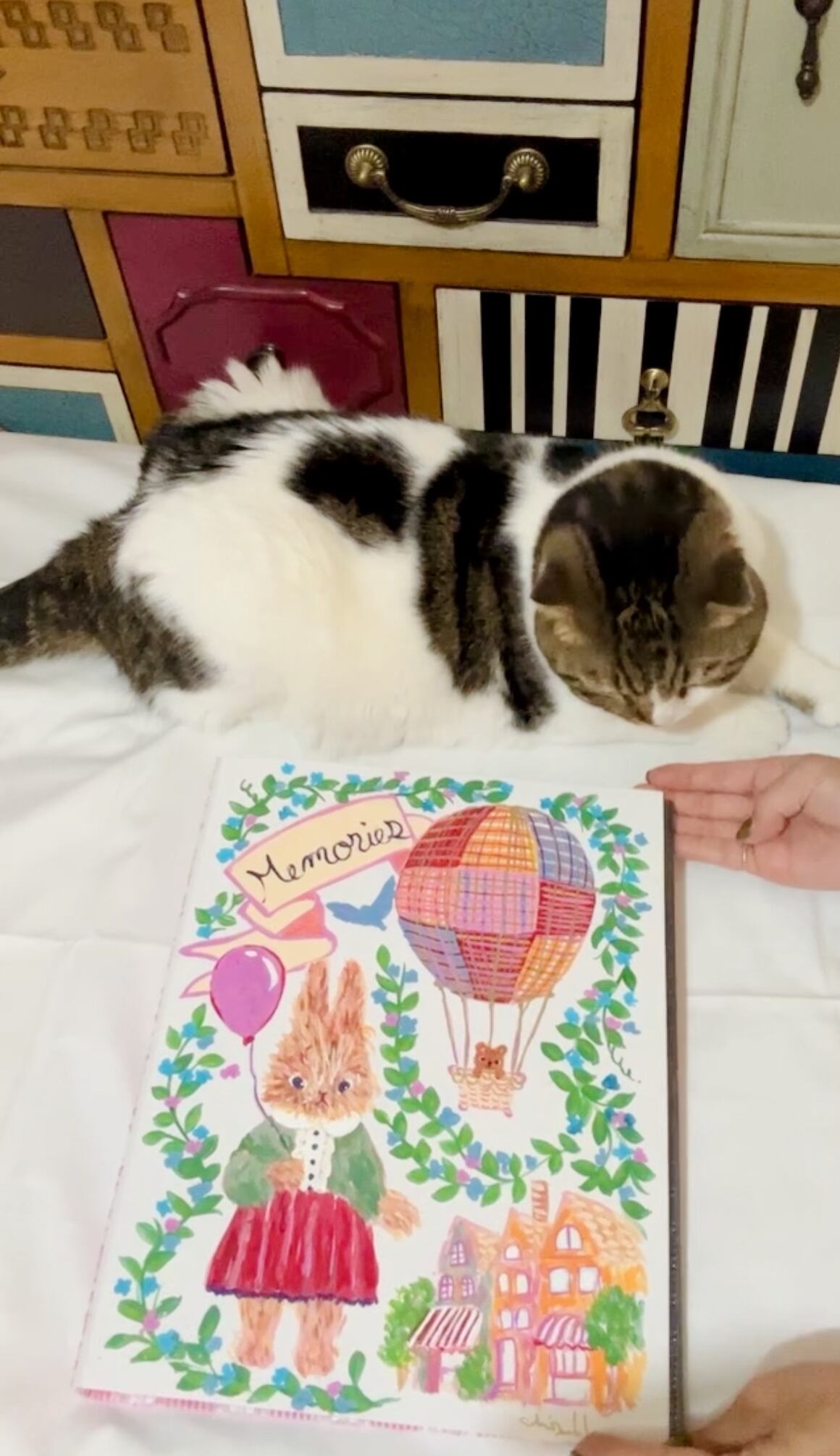A4用の2つ穴ファイルバインダーに絵を描きました。