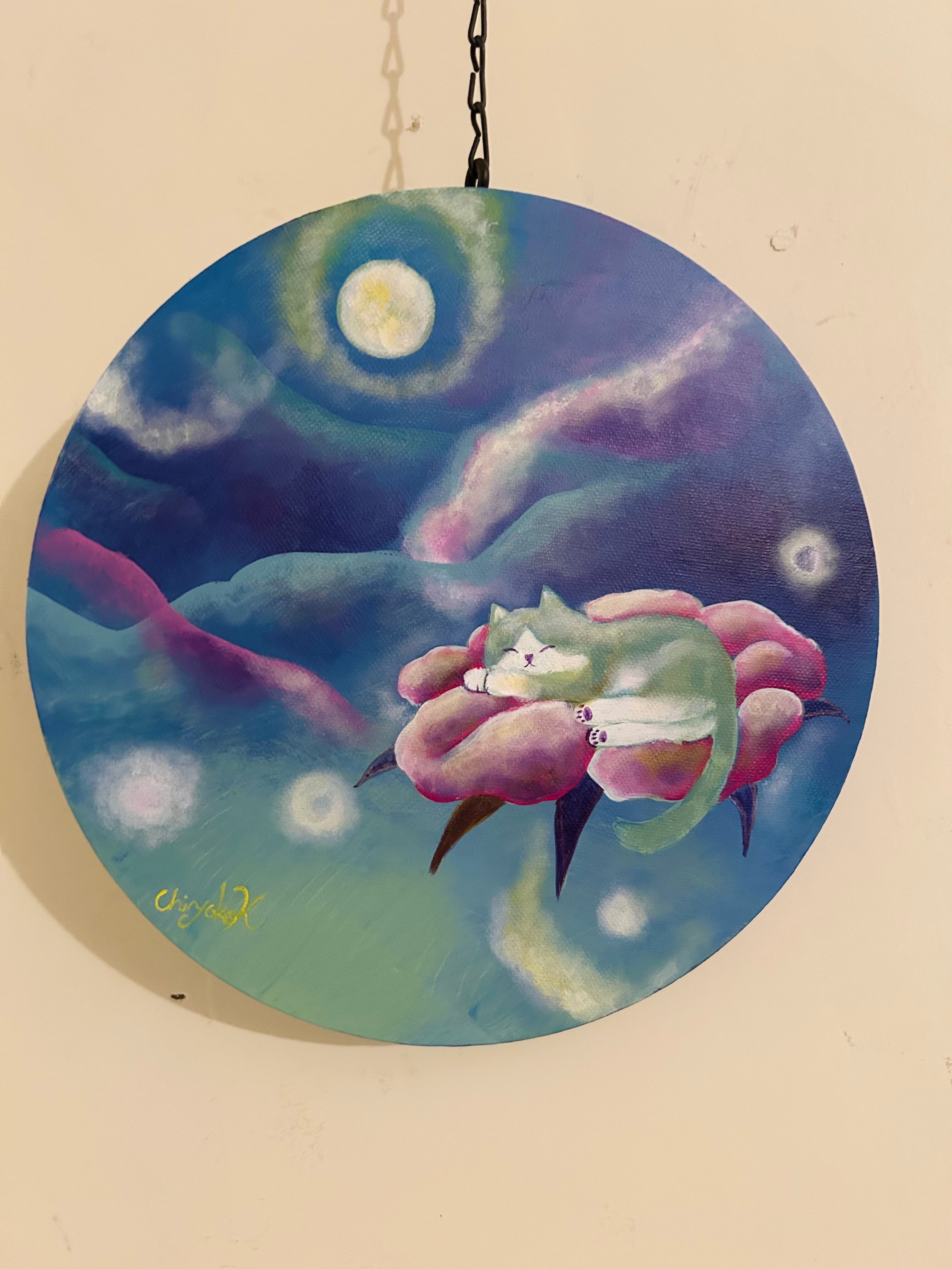 「月あかりのネコ」アクリル原画