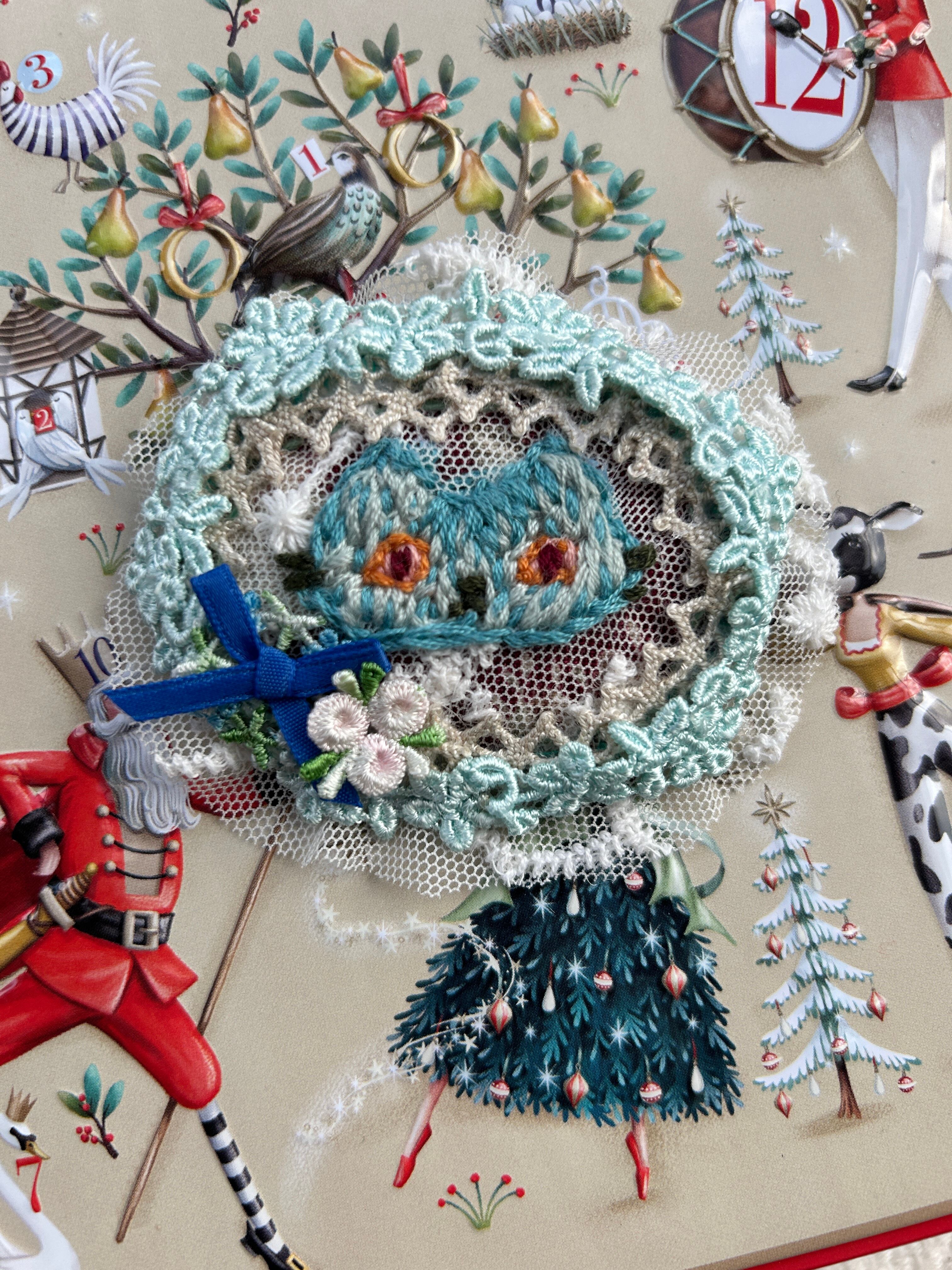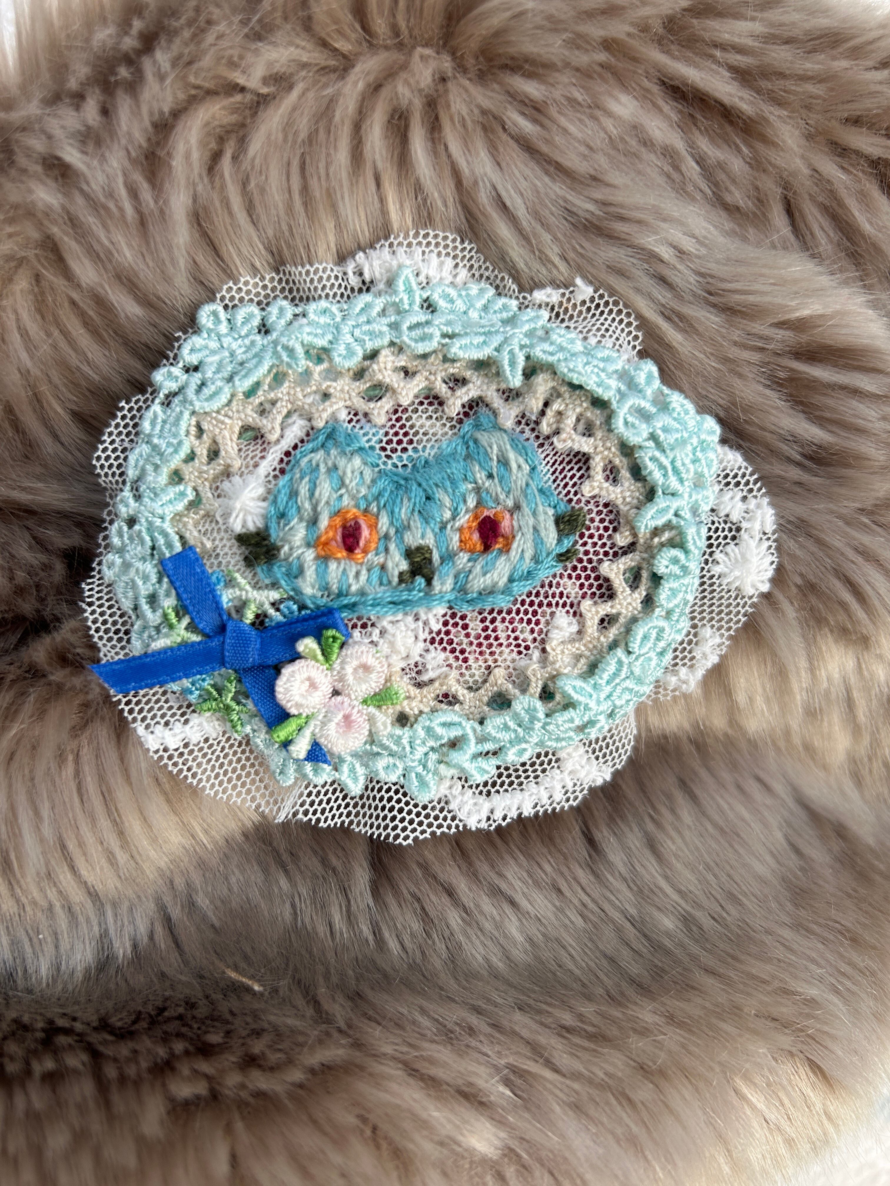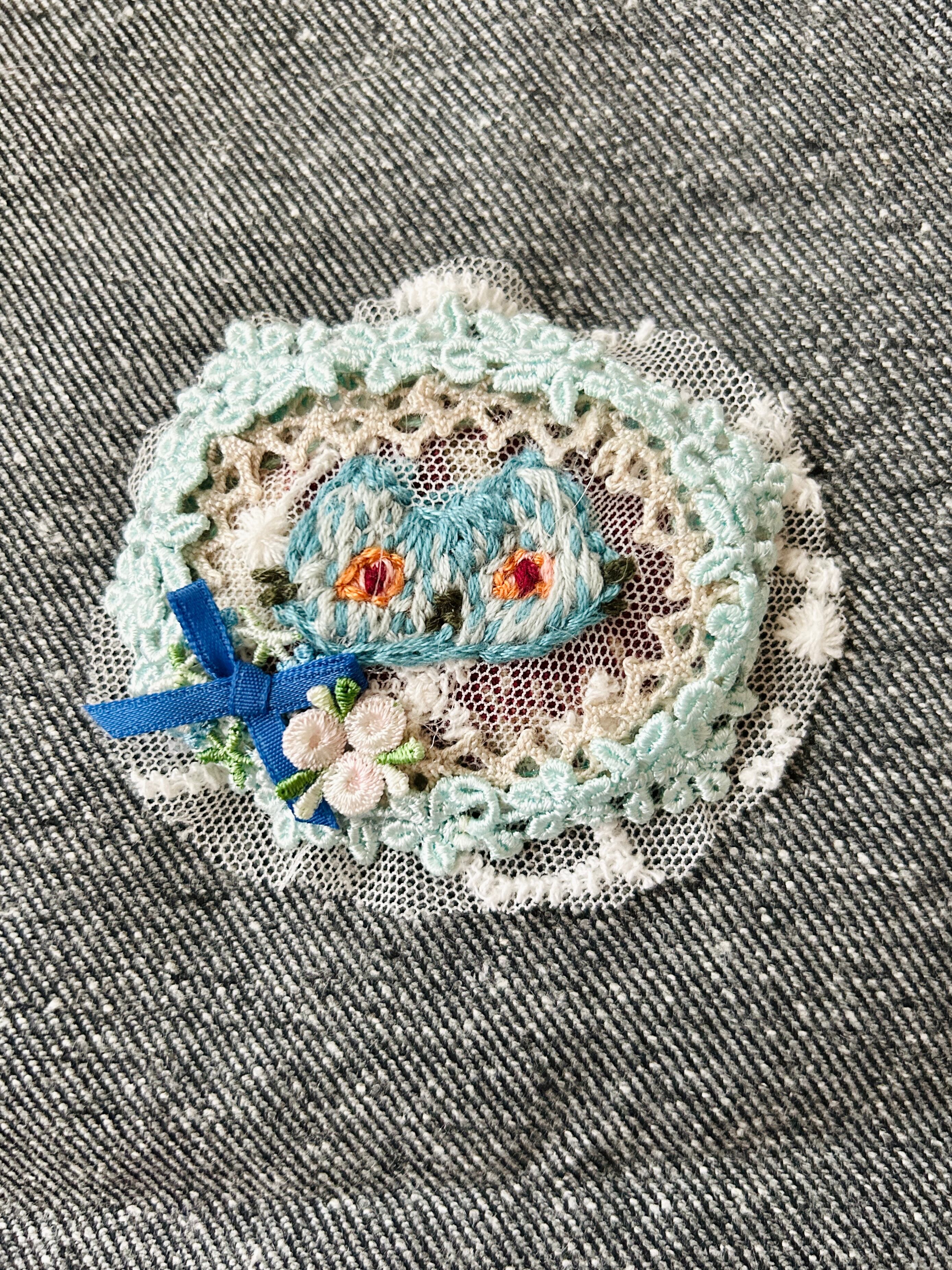 「青レースのベル」刺繍ブローチ:刺繍の森