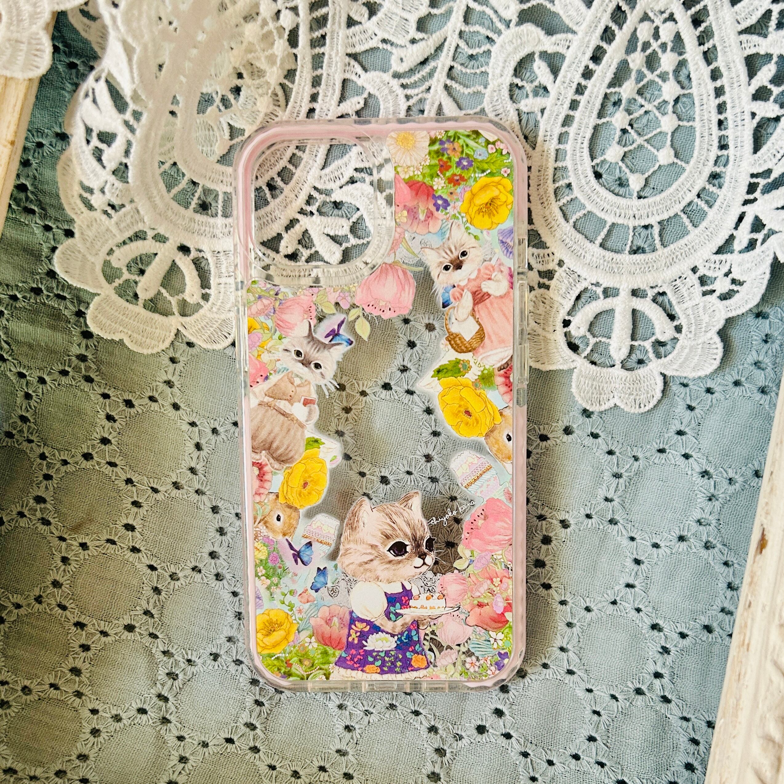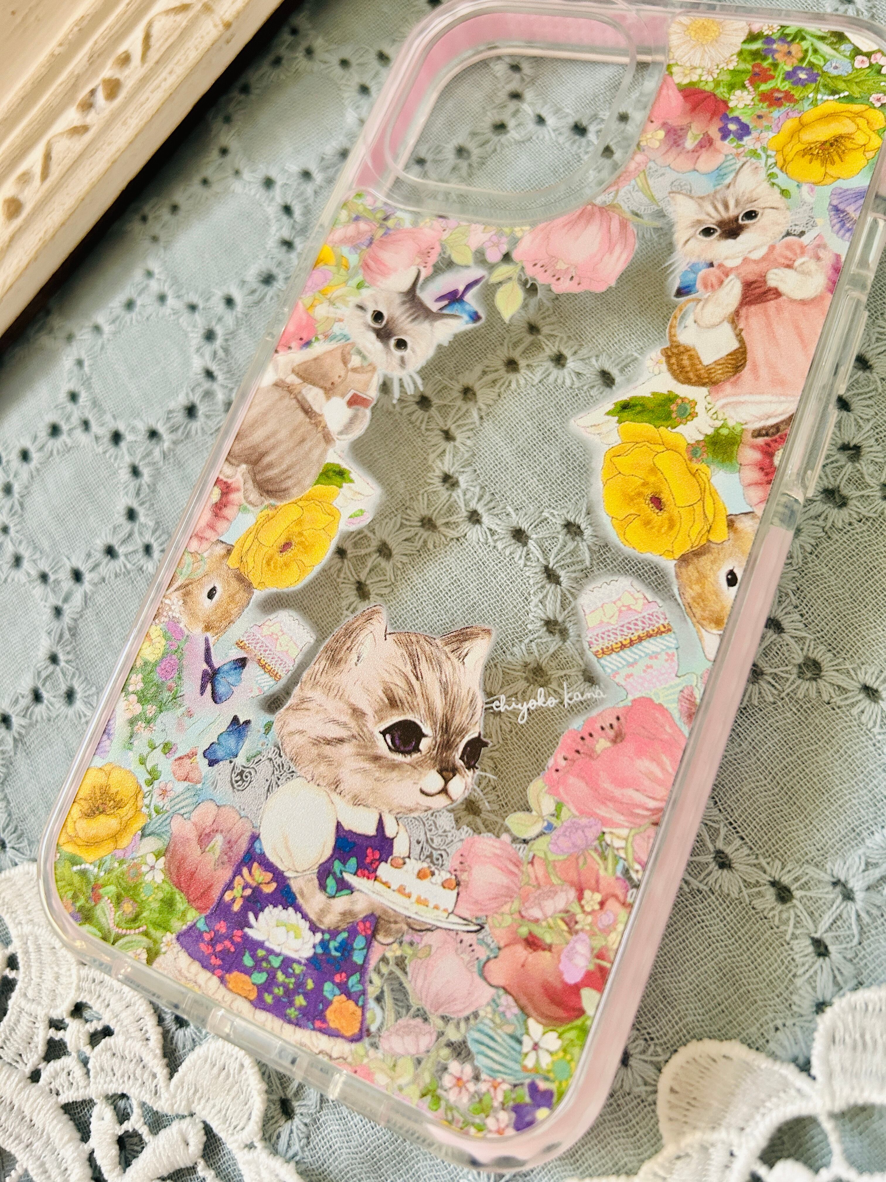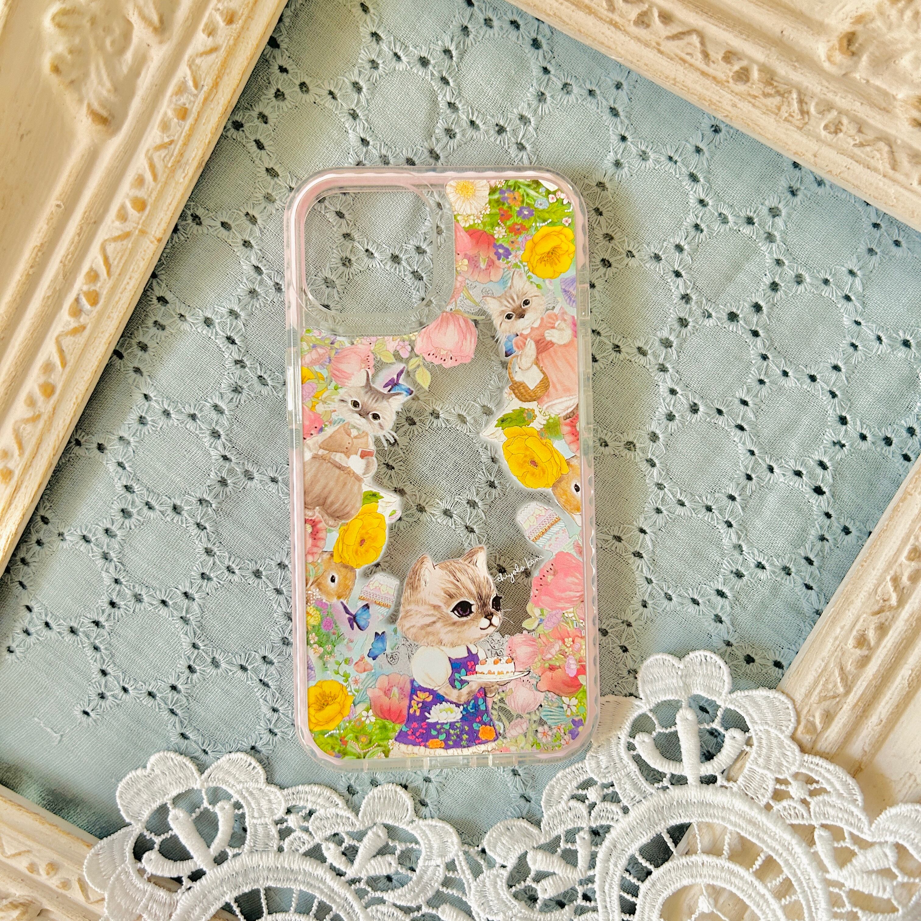 ケーキはいかが。 不思議の国のこねこたち。 背面がクリアだから、iPhone本体の色がデザインの一部に。 サイドは衝撃から本体を守るクッションバンパー。 色はペールピンク。 花いっぱいの中にネコやうさぎ、蝶々も。 不思議かわいい作品になりました。 [素材] サイド: TPU素材(耐衝撃ケース) 背面:ポリカーボネート [発送] ご注文から5〜7営業日。 *機種ごとにサイズが異なります。 ご注文の際はご確認の上お願いいたします。 * 丁寧に発送、準備いたします。