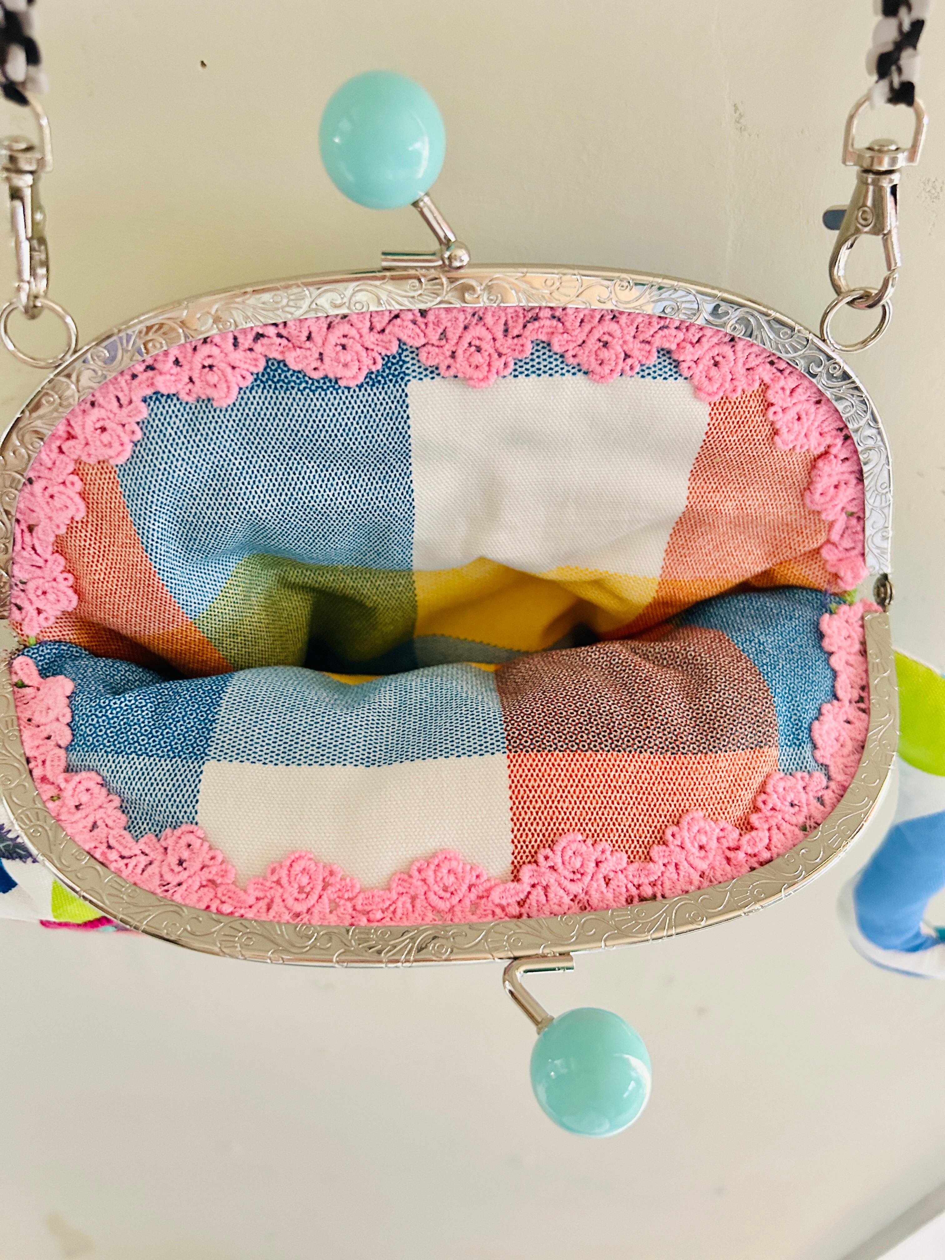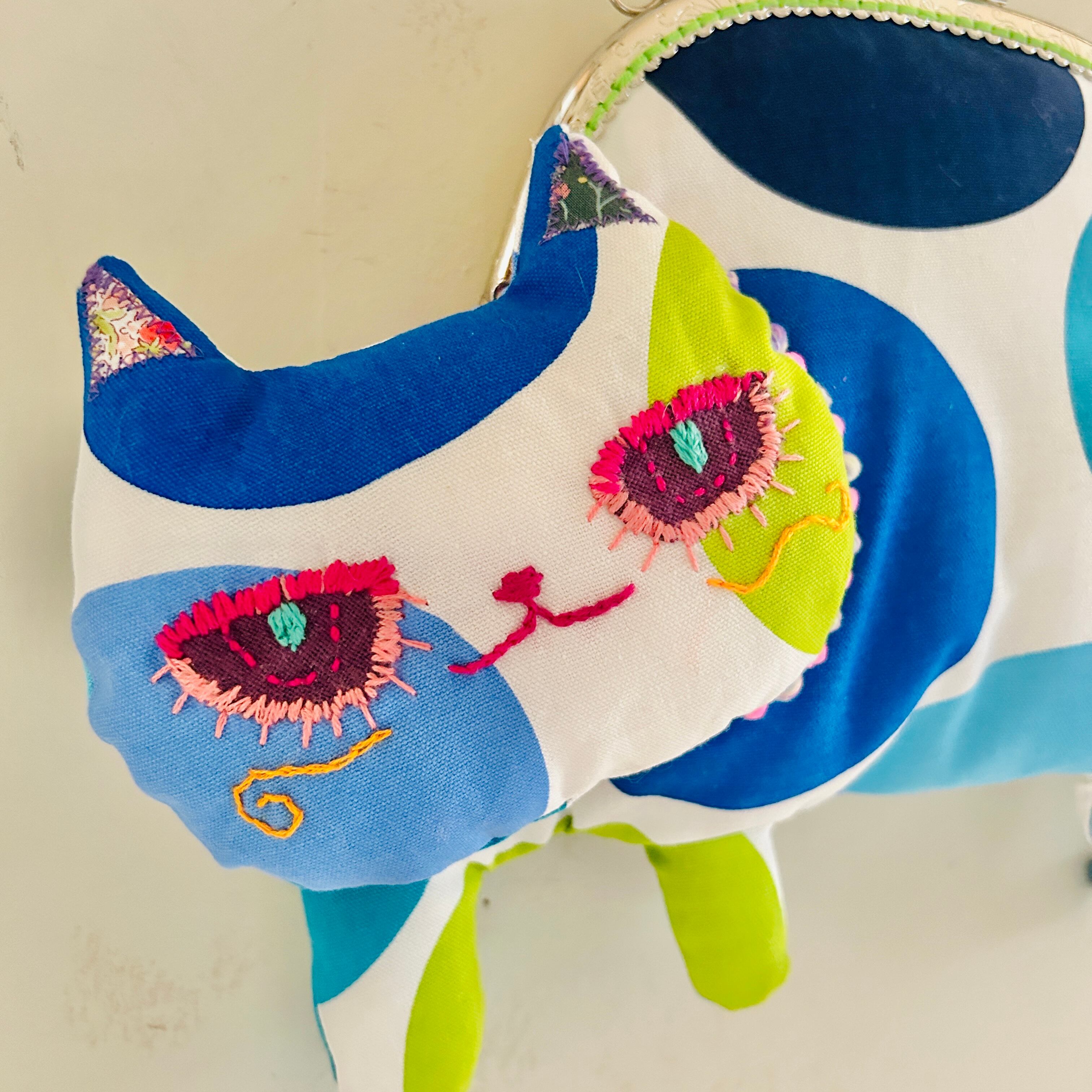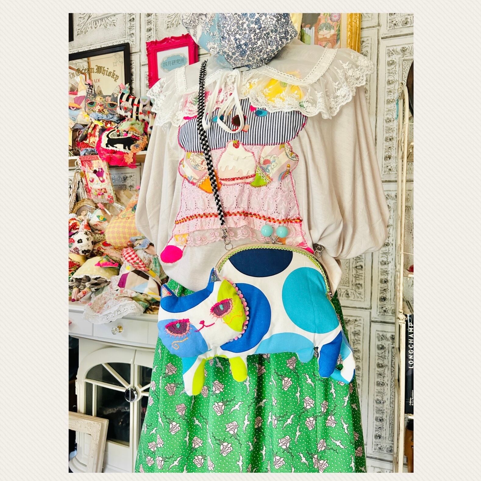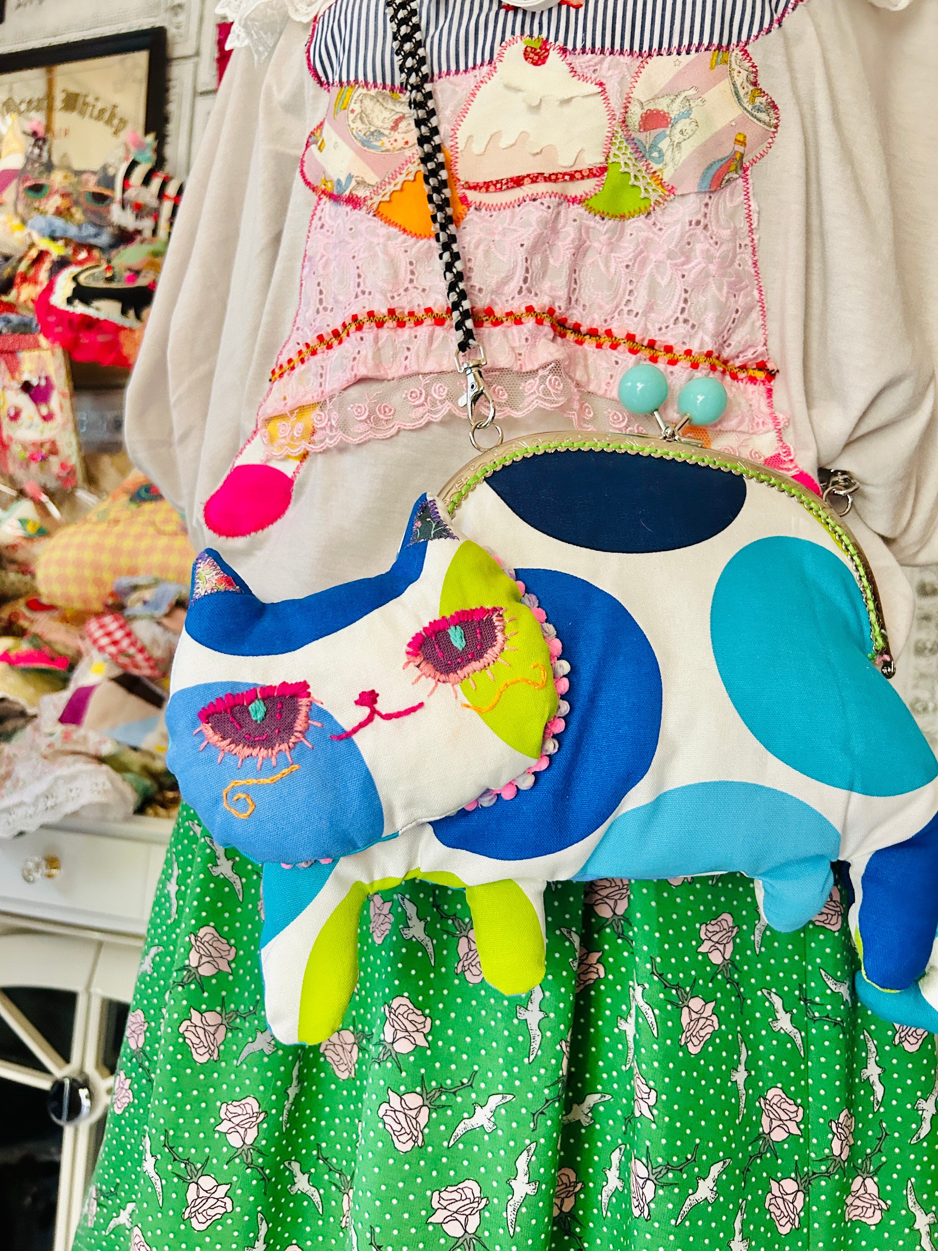 絵本の世界のような、ドールがそのままがま口ポシェット になりました。