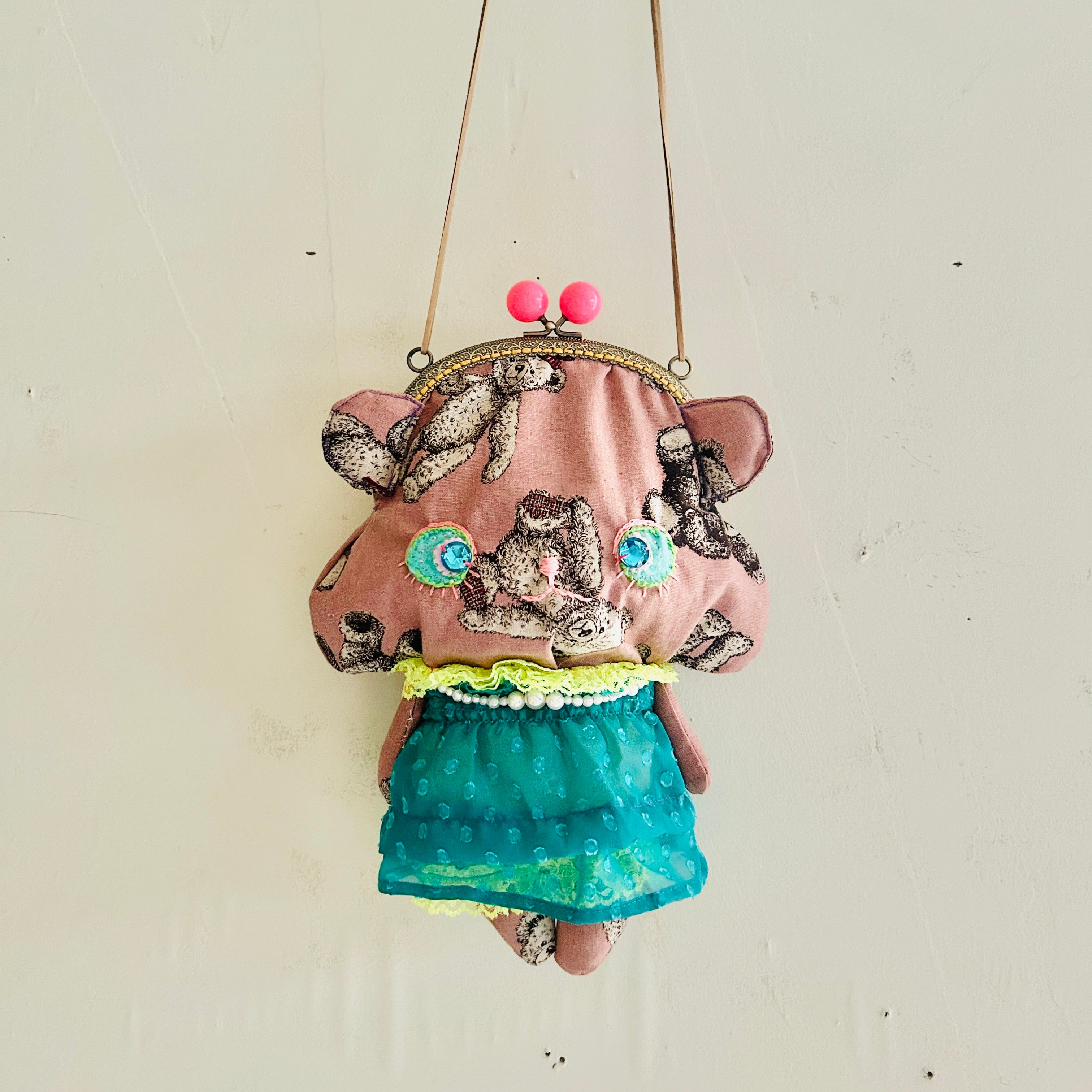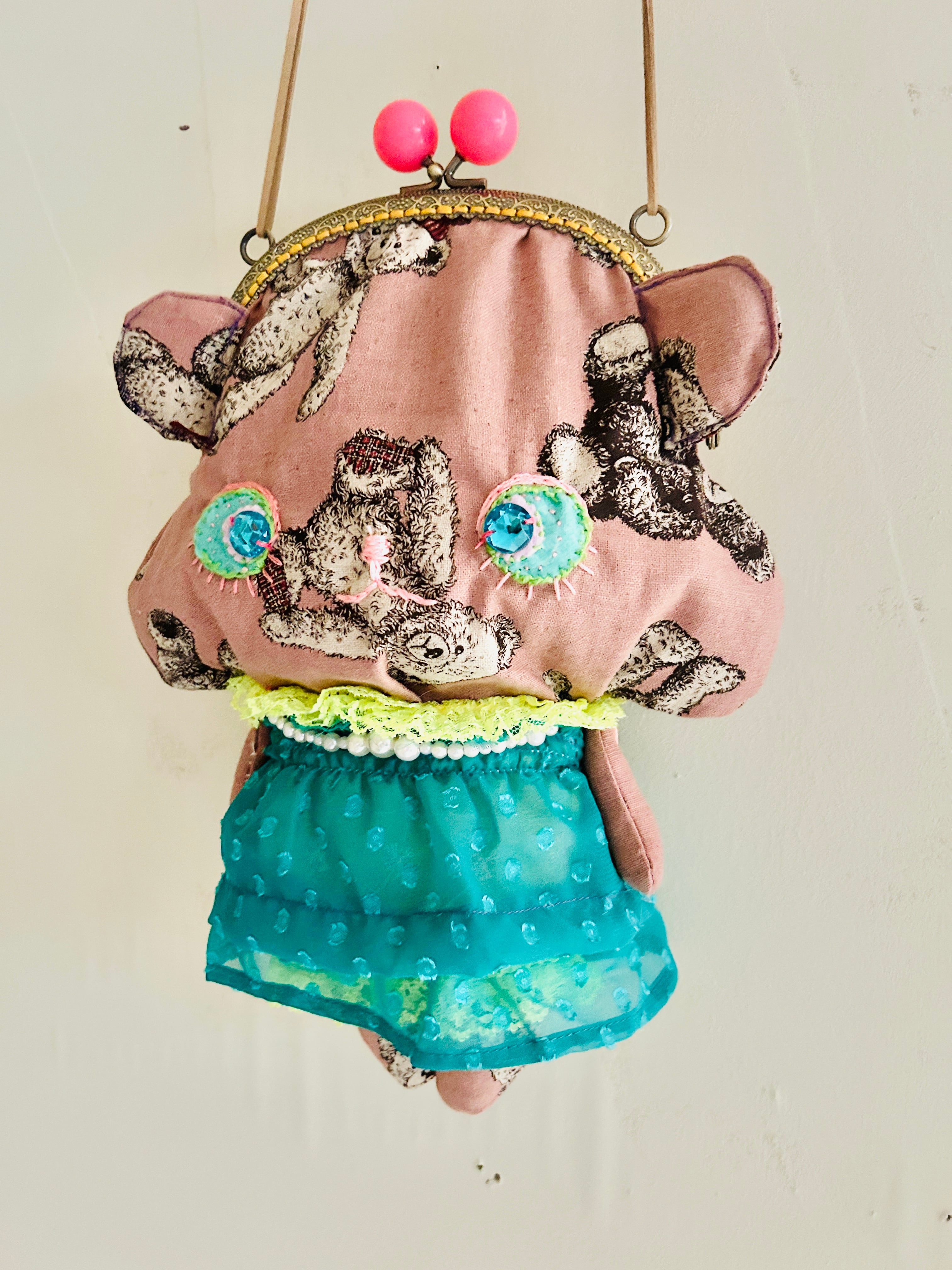 Bear plushie purse おさんぽくまちゃん がま口ポシェット アンティークピンク ドール