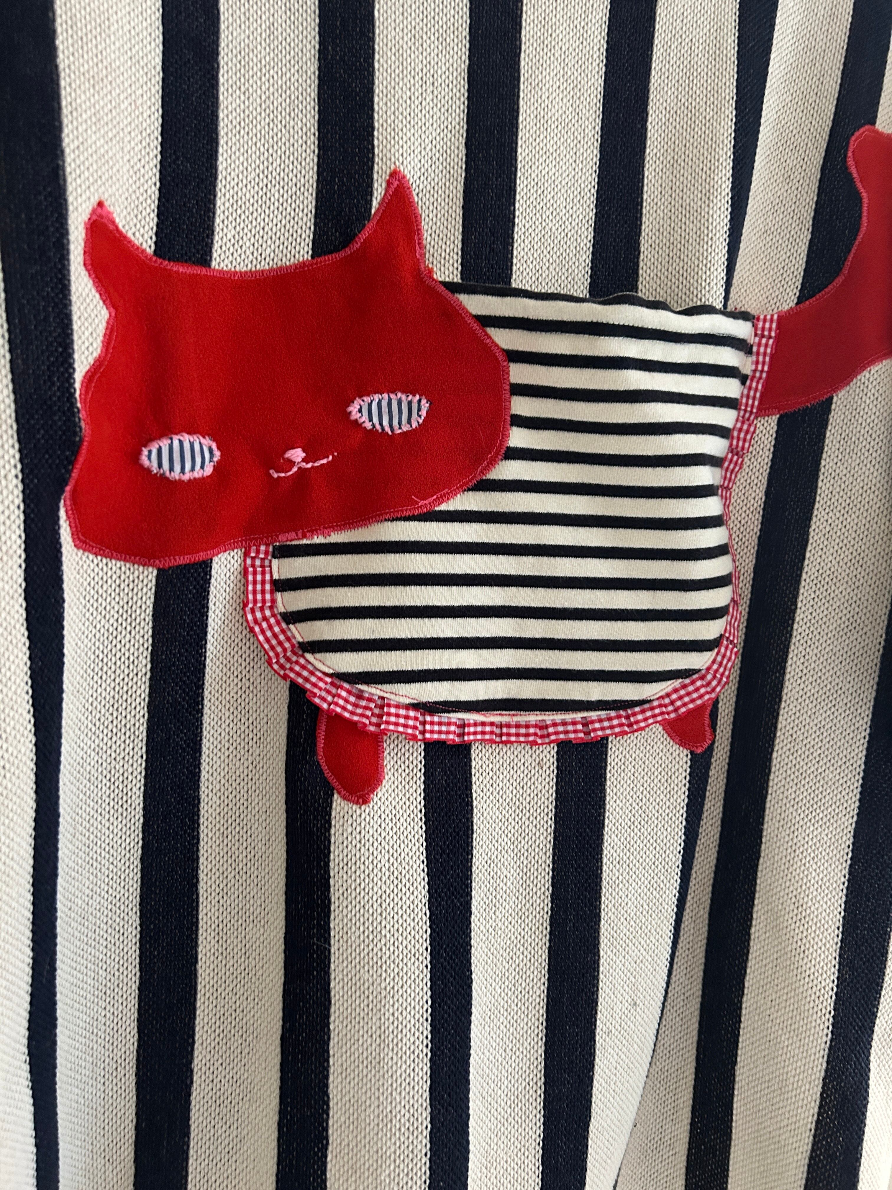 ボーダーポケットの赤いネコ 着るドール Tシャツ ドルマンスリーブ フリーサイズ