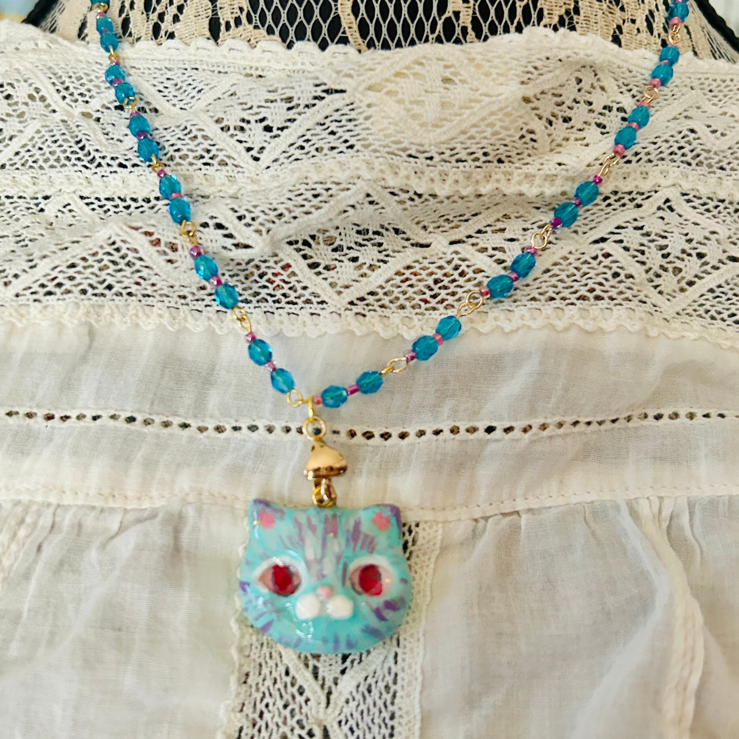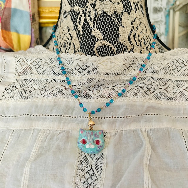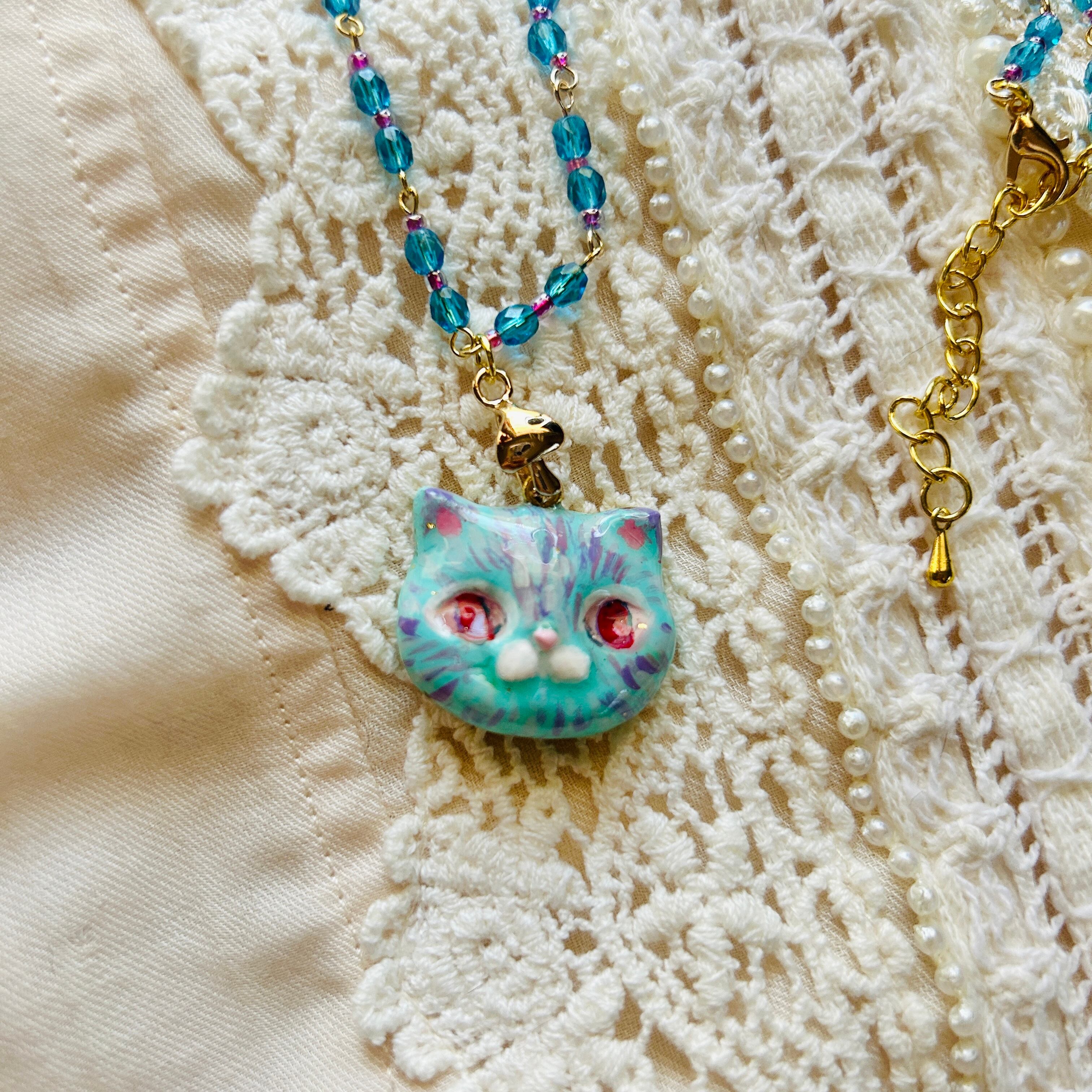 トップの猫は樹脂製のハンドメイド、世界に一つのチャームです。