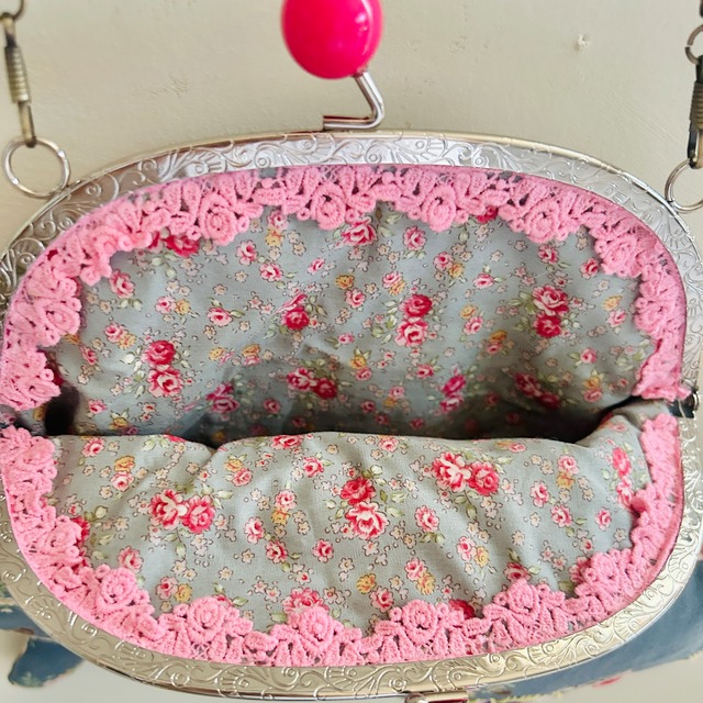 アンティークブルーなにゃんこポシェット 、できました。