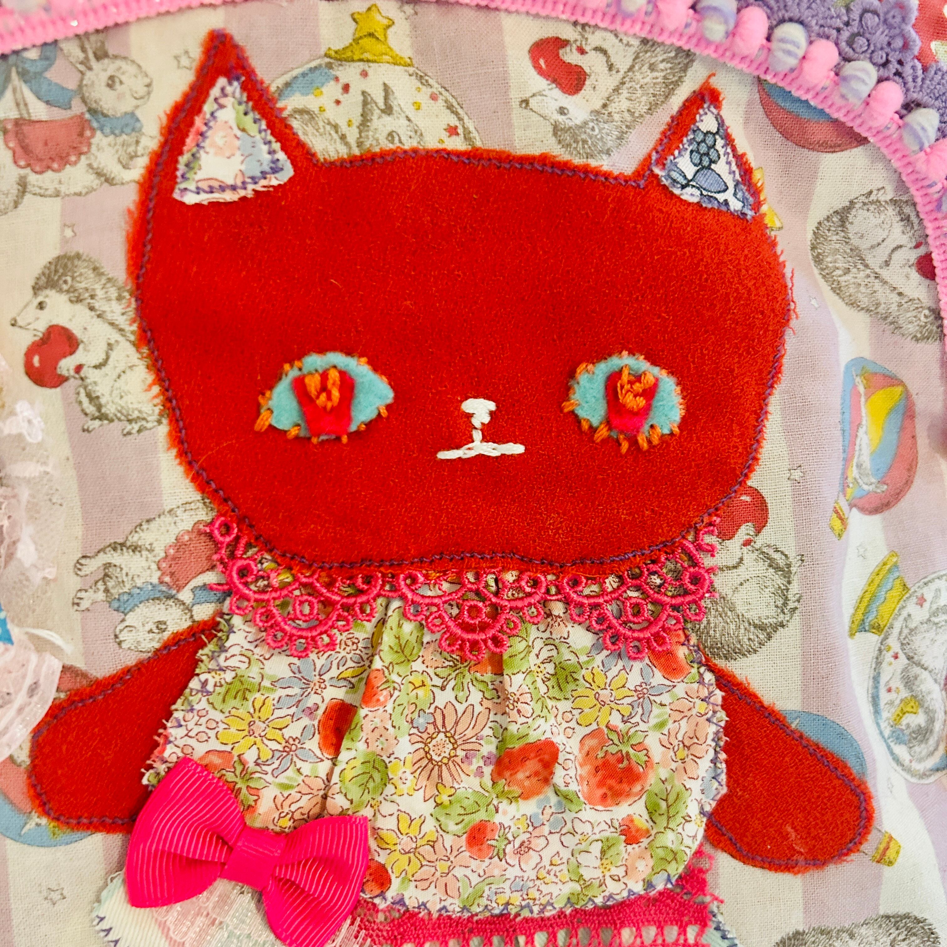 The large pouch bag with a cat doll, she will accompany you on your outings.