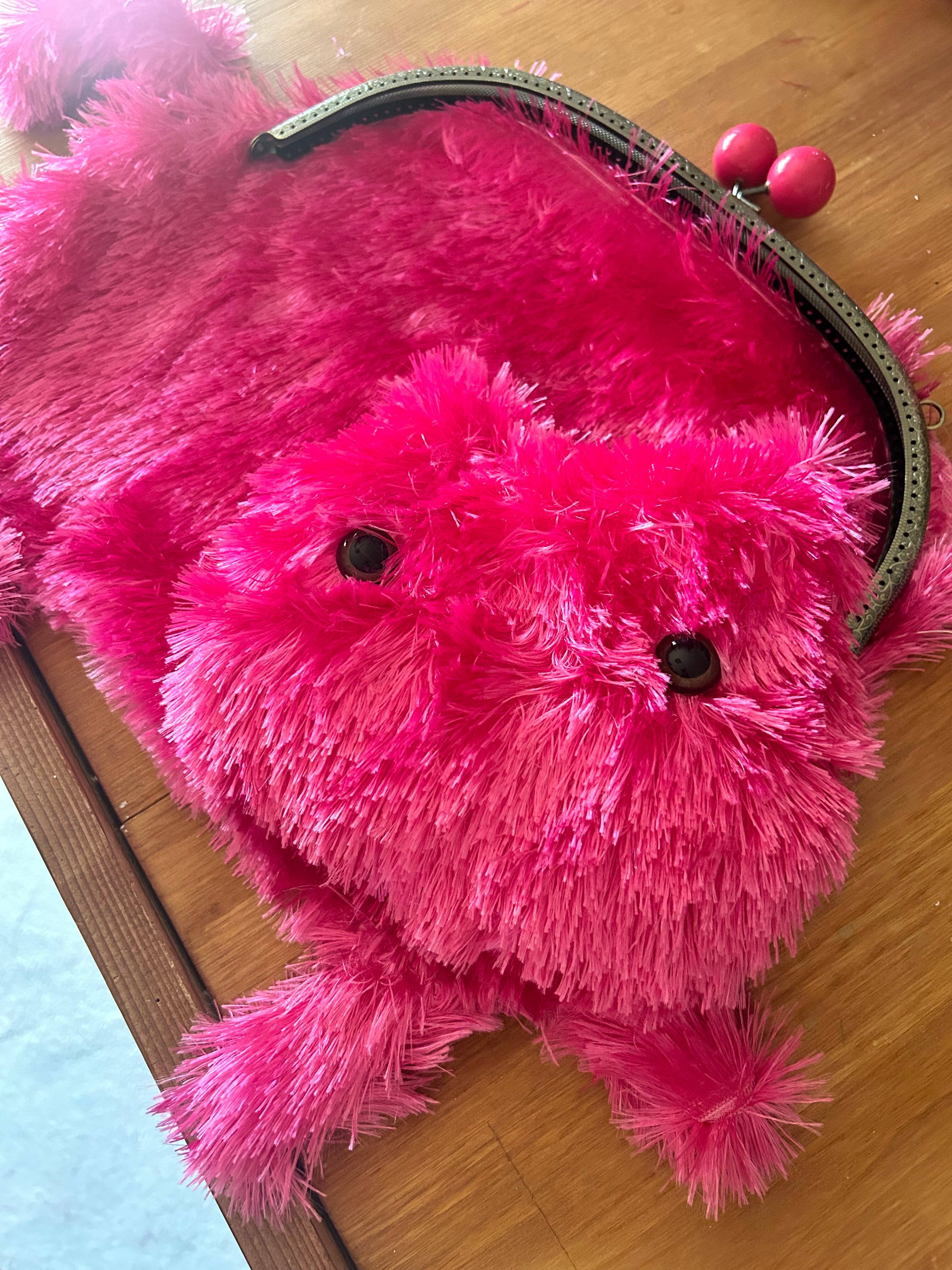 飴玉みたいながま口の留玉は大きくて、ビビットなピンク。