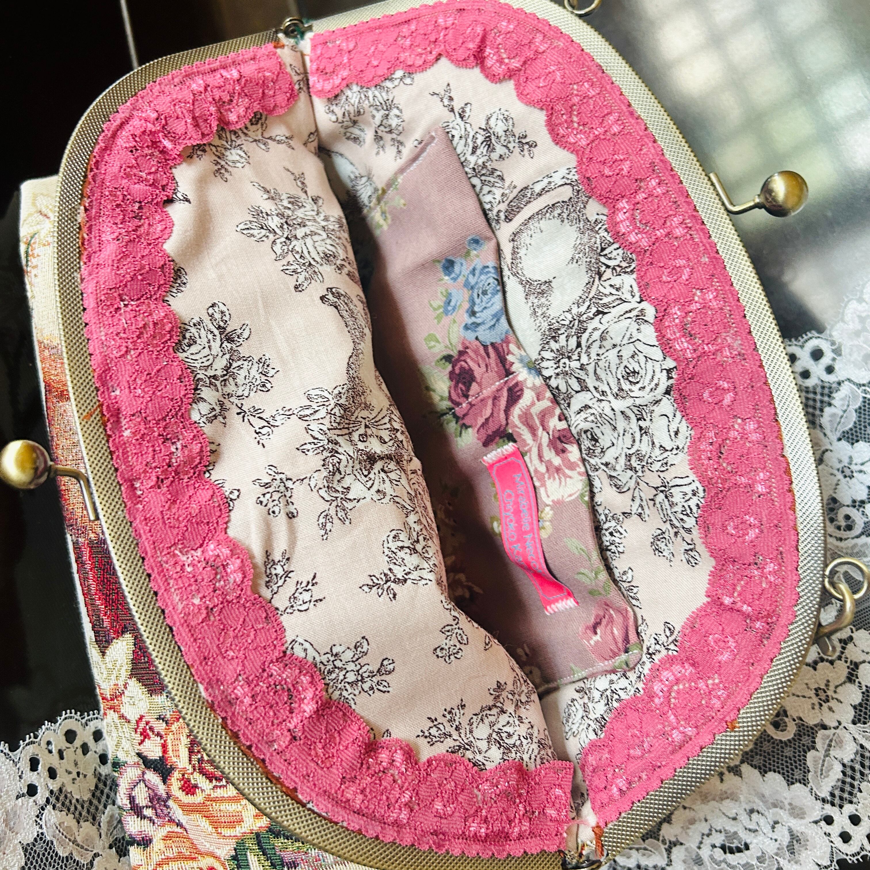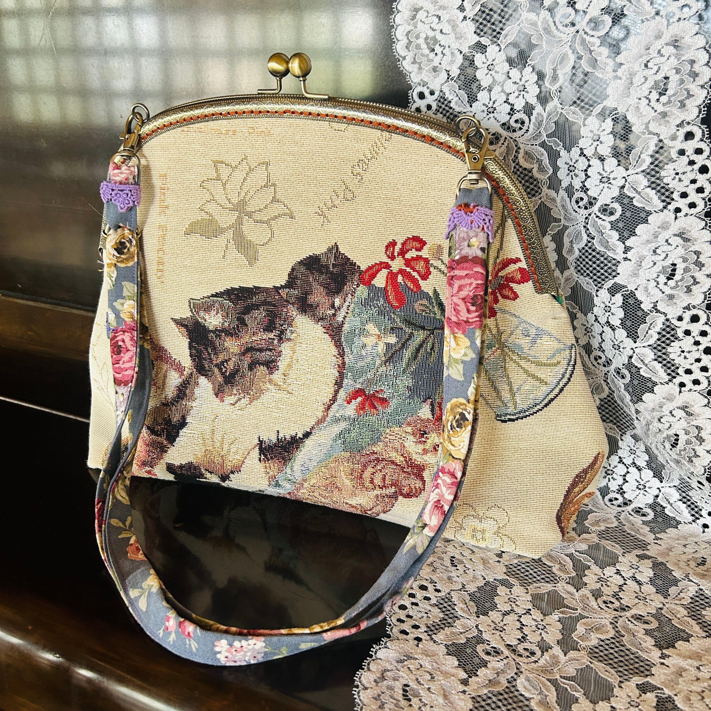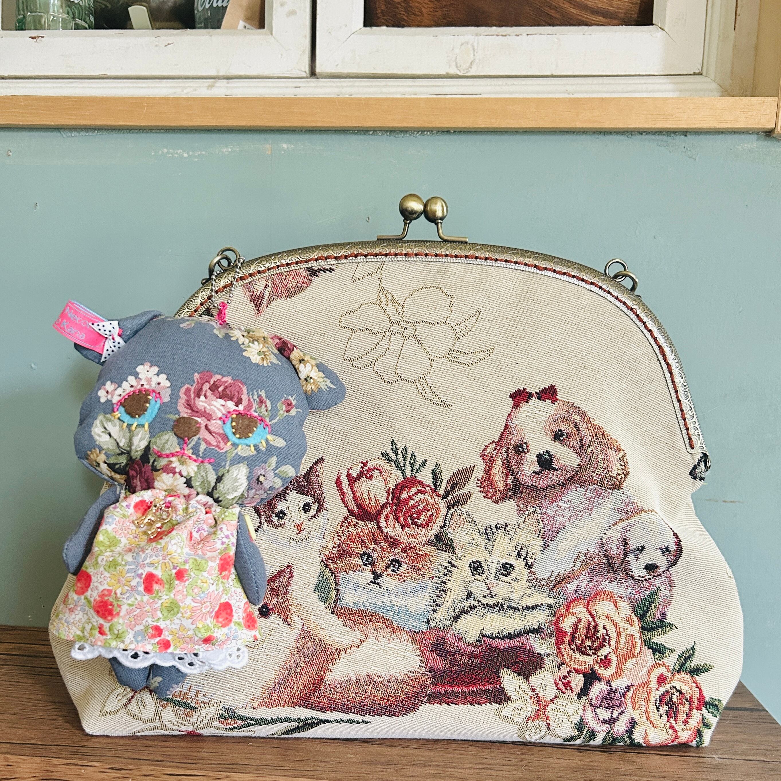 限定22cmサイズ [子犬と子猫がま口バッグ ゴブラン織 バッグ