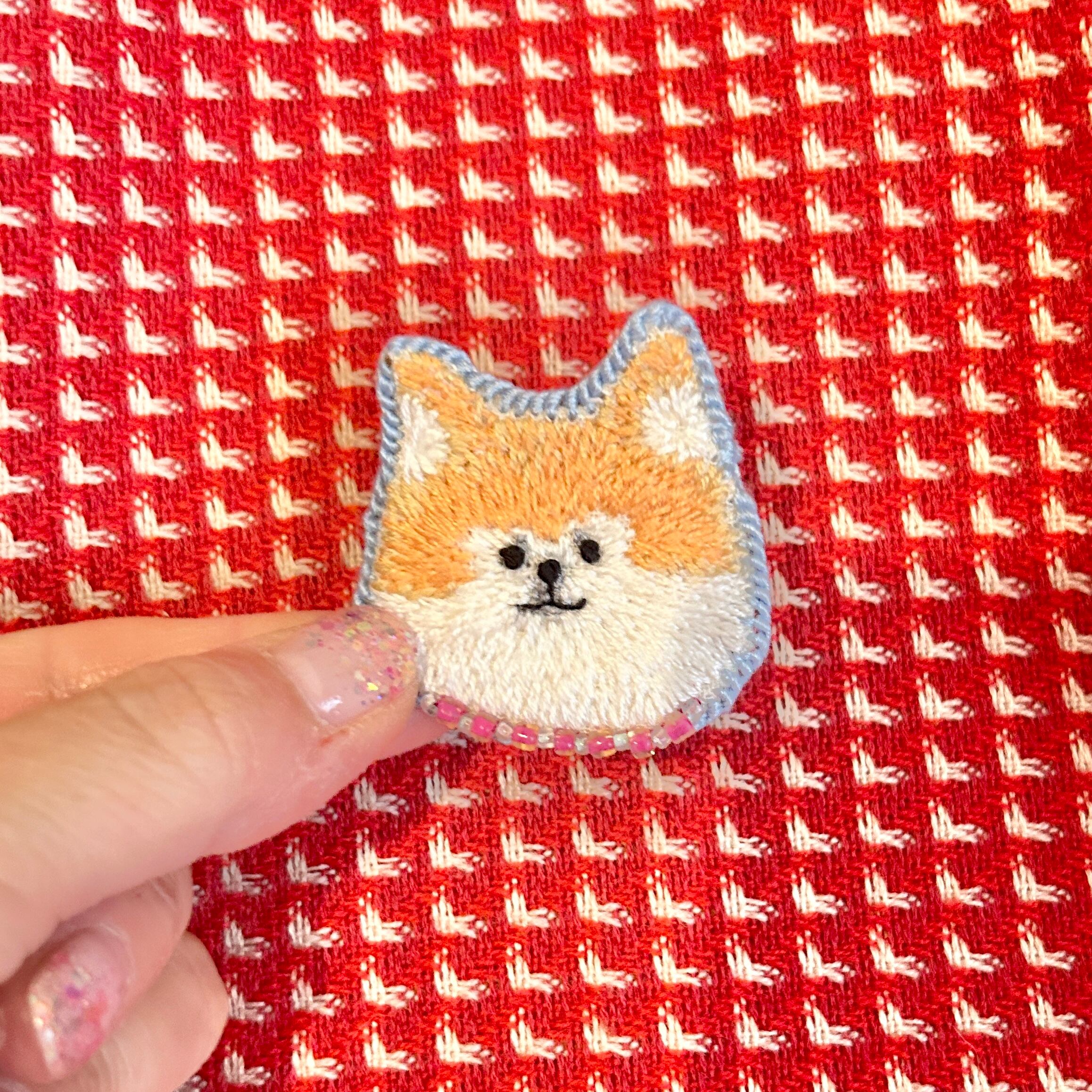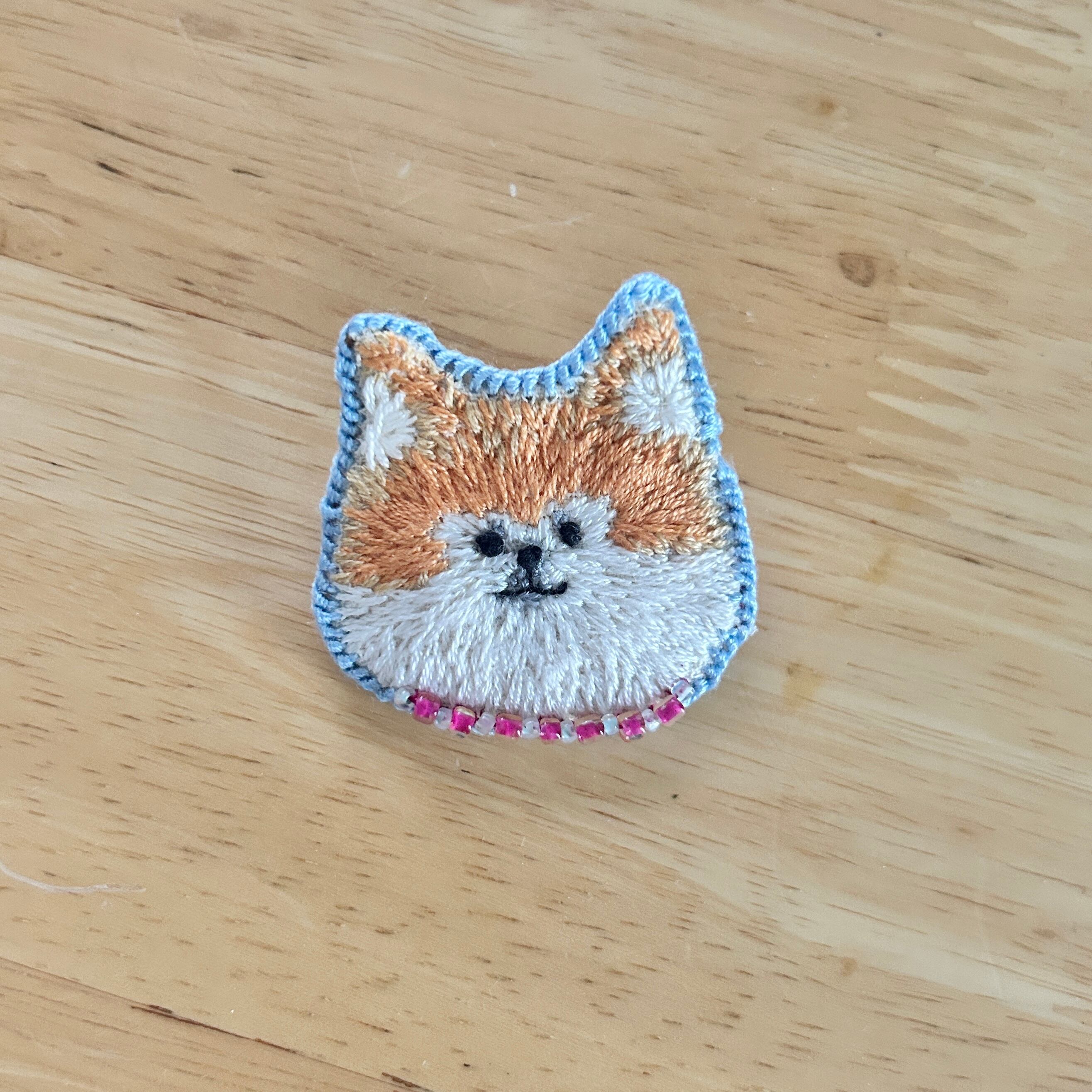 あきたちゃん「キリッ(`・ω・´)」秋田犬 刺繍ドールブローチ:刺繍の森