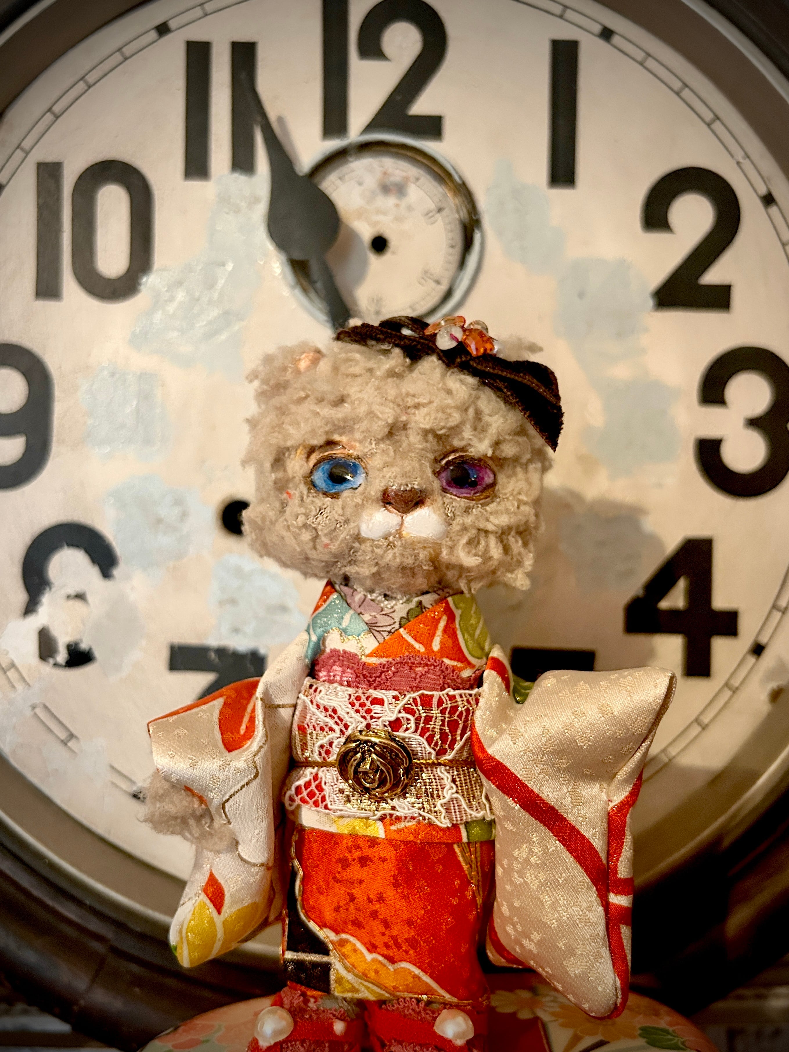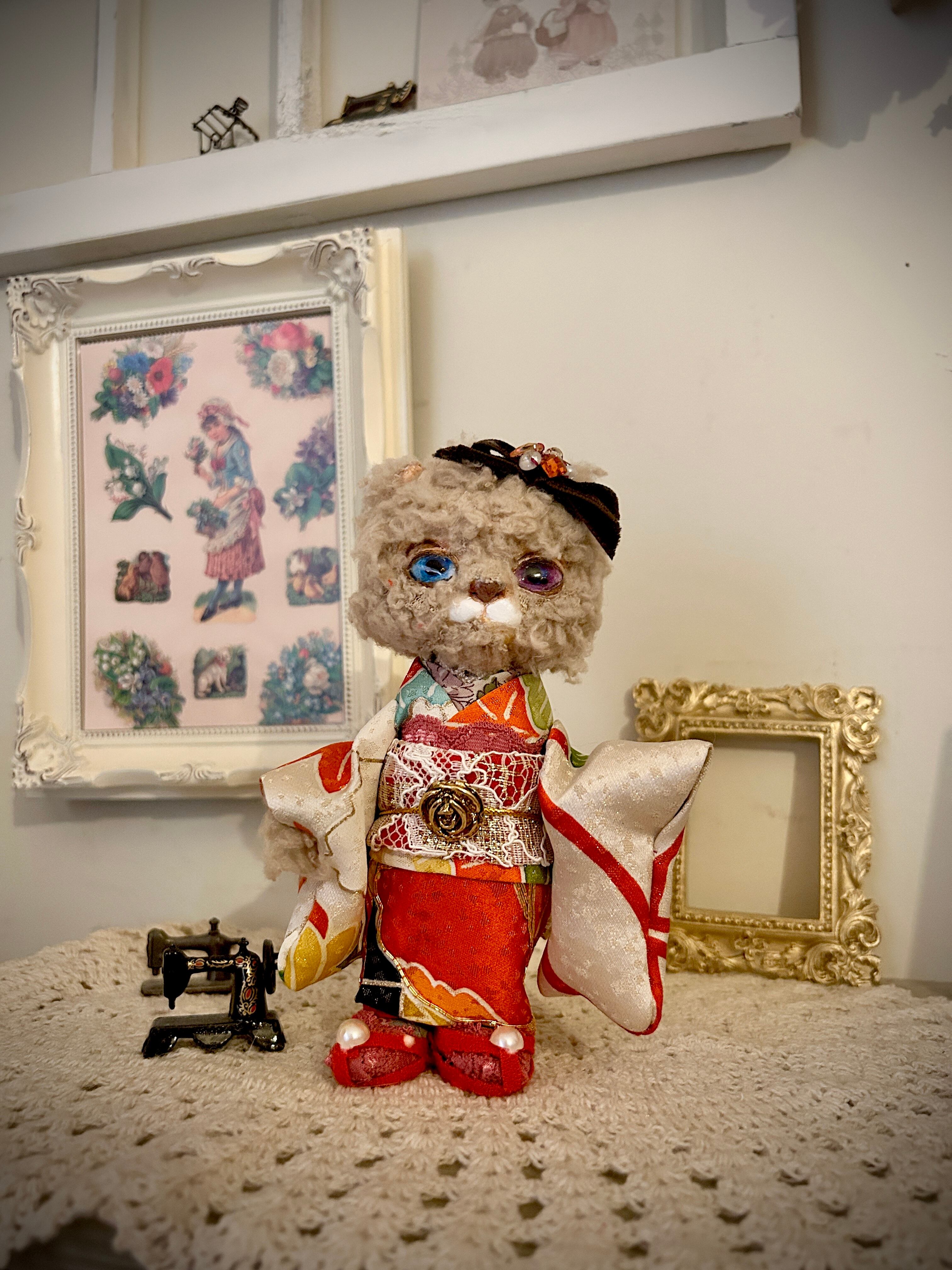 大正ロマンな装いに身を包んだ、オッドアイのねこさんです。