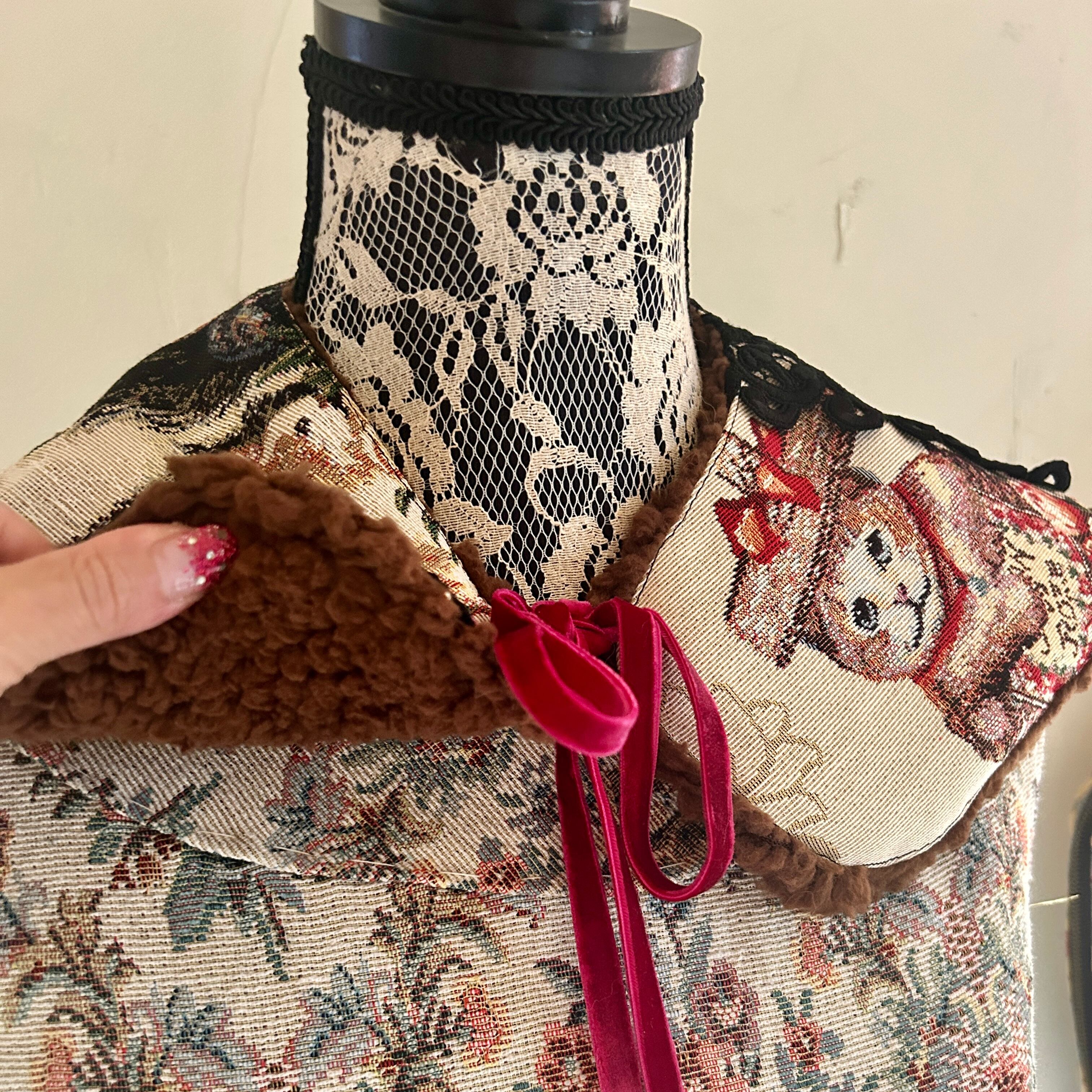 売約: もふもふつけ襟 アンティーク気分 おしゃれ ゴブラン織